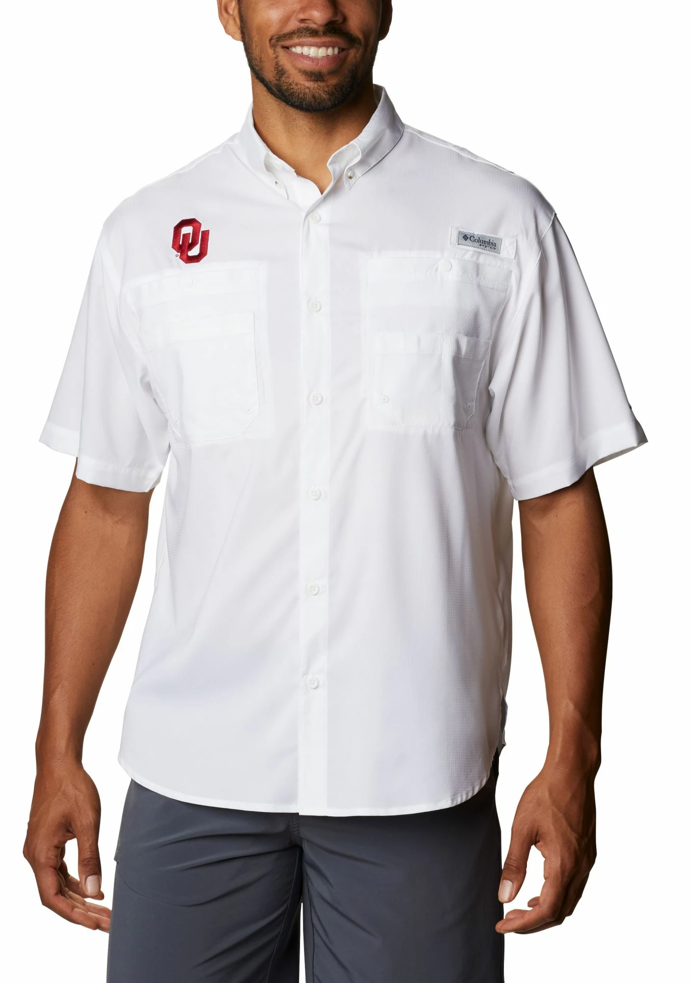 Wholesale ✨ Columbia Men’s Oklahoma Sooners Tamiami Button Down White 👚 Shirt 🔥
