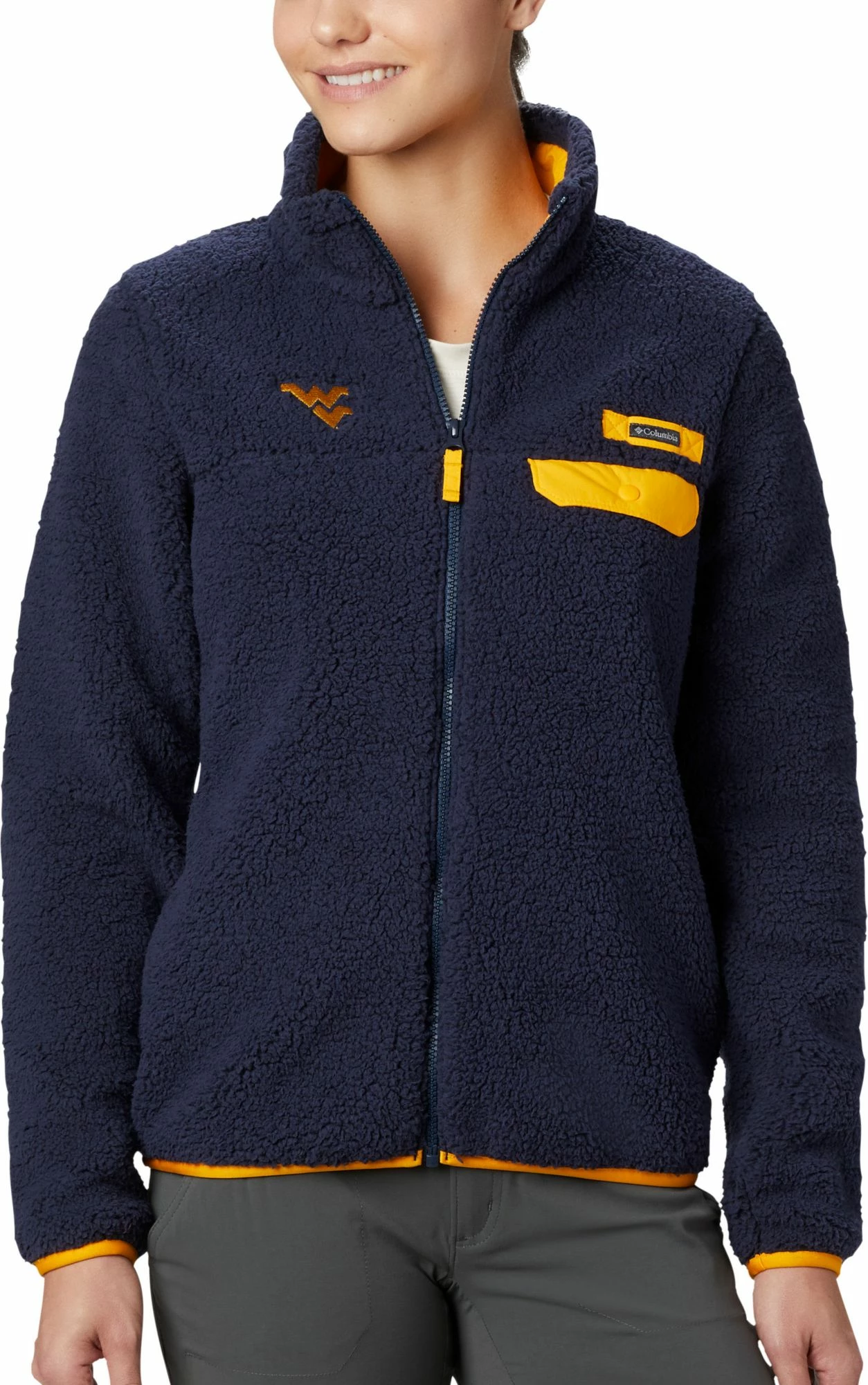 Own the fall season with cozy Mountaineers gear in the Columbia® Womenβs West Virginia Mountaineers Mountain Side Heavyweight Full-Zip Jacket.